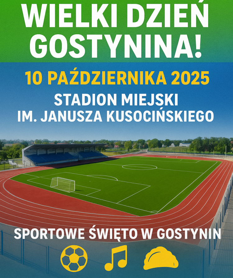 10 października 2025 r. w Gostyninie odbędzie się uroczyste otwarcie nowoczesnego Stadionu Miejskiego im. Janusza Kusocińskiego.