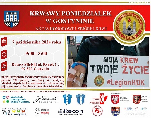 Zbliżających się akcji krwiodawstwa w Płocku i Gostyninie:
