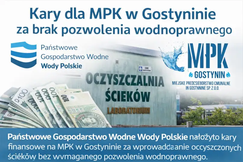 Miejskie Przedsiębiorstwo Komunalne w Gostyninie zostało ukarane administracyjnie za korzystanie z usług wodnych bez wymaganego pozwolenia wodnoprawnego. Informacje te wynikają z odpowiedzi udzielonej przez Państwowe Gospodarstwo Wodne Wody Polskie (znak sprawy W.ROA.0144.64.2026).