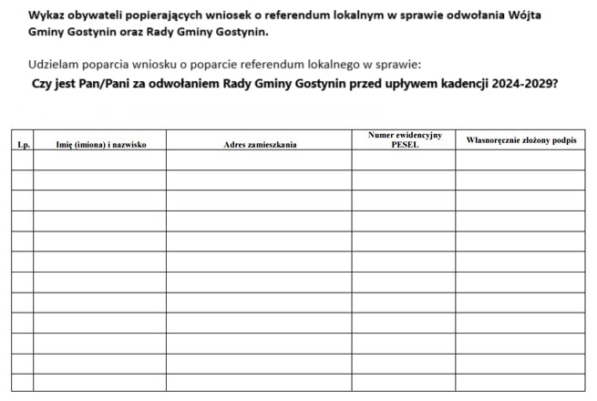 Czy jest Pan/Pani za odwołaniem Rady Gminy Gostynin przed upływem kadencji?